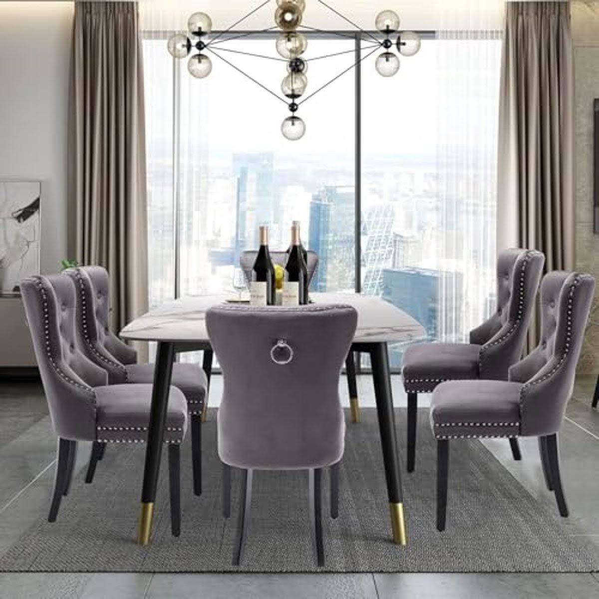 Set de 6 Chaises de salle à manger en velours avec Pieds en bois Massief