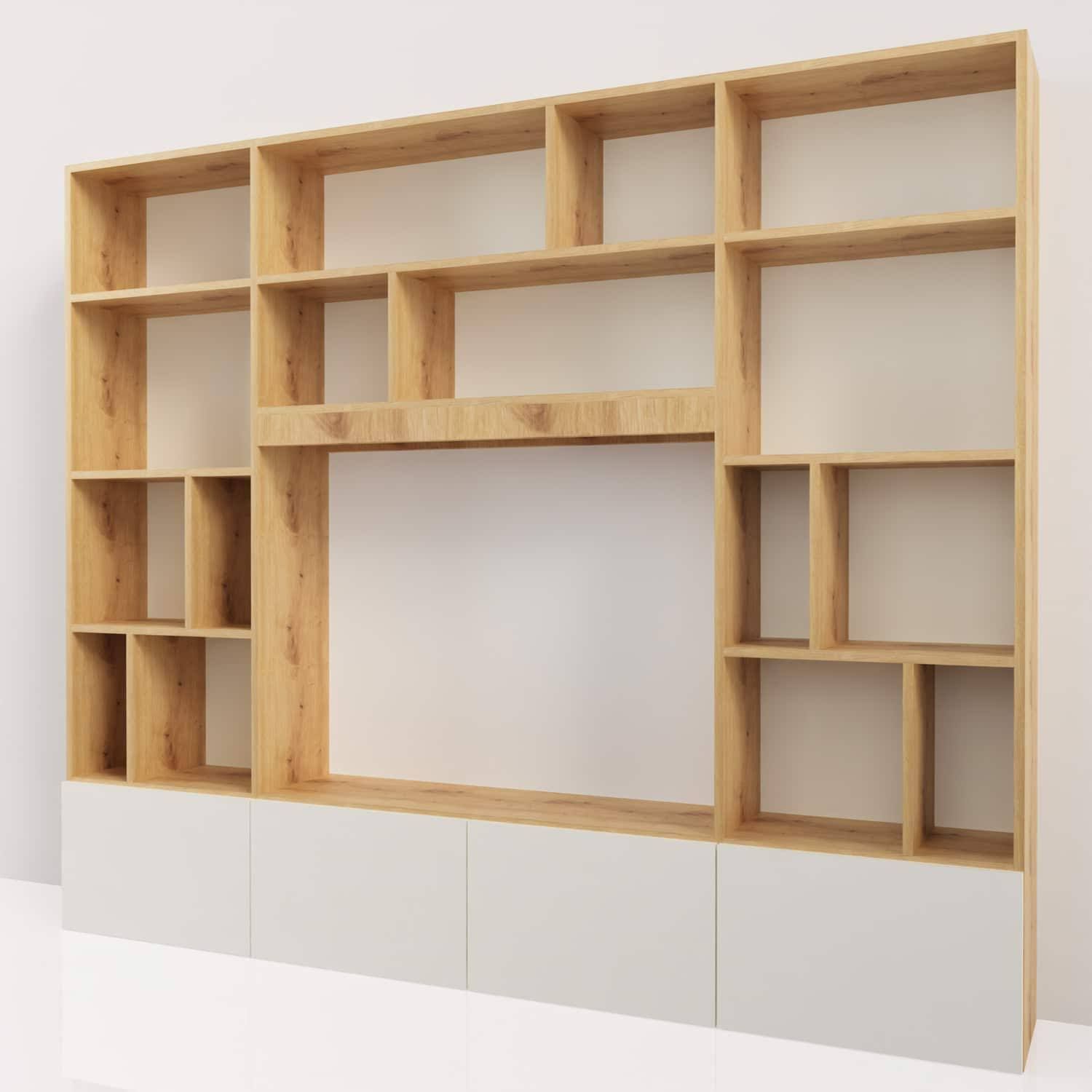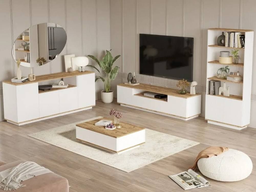 baïta Meuble TV d'angle AMANA effet chêne et cannage rotin 2 portes