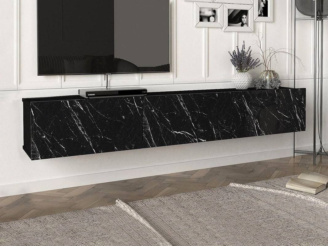 vente-unique.com Meuble TV suspendu effet bois noir style contemporain